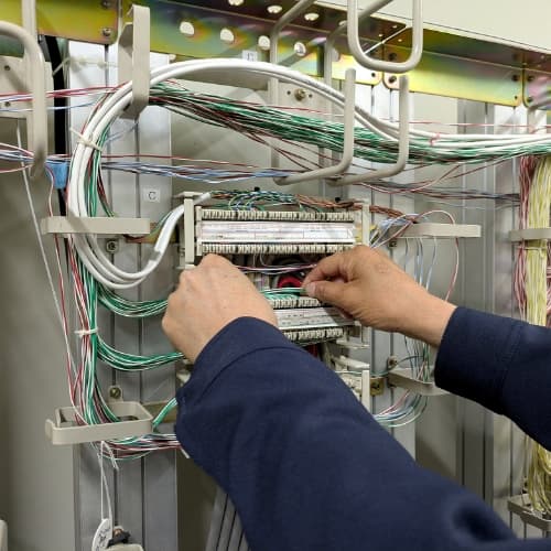 オフィスや施設で電話機や通信機器を使えるようにするための配線作業を行います。新しく設備を設置したり、古いシステムを最新のものにアップグレードしたりする際の工事も担当します。