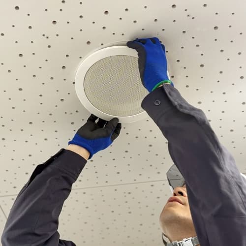 公共施設や商業施設、学校や病院に設置されている、放送設備(マイクやスピーカー)などの設置を行います。
